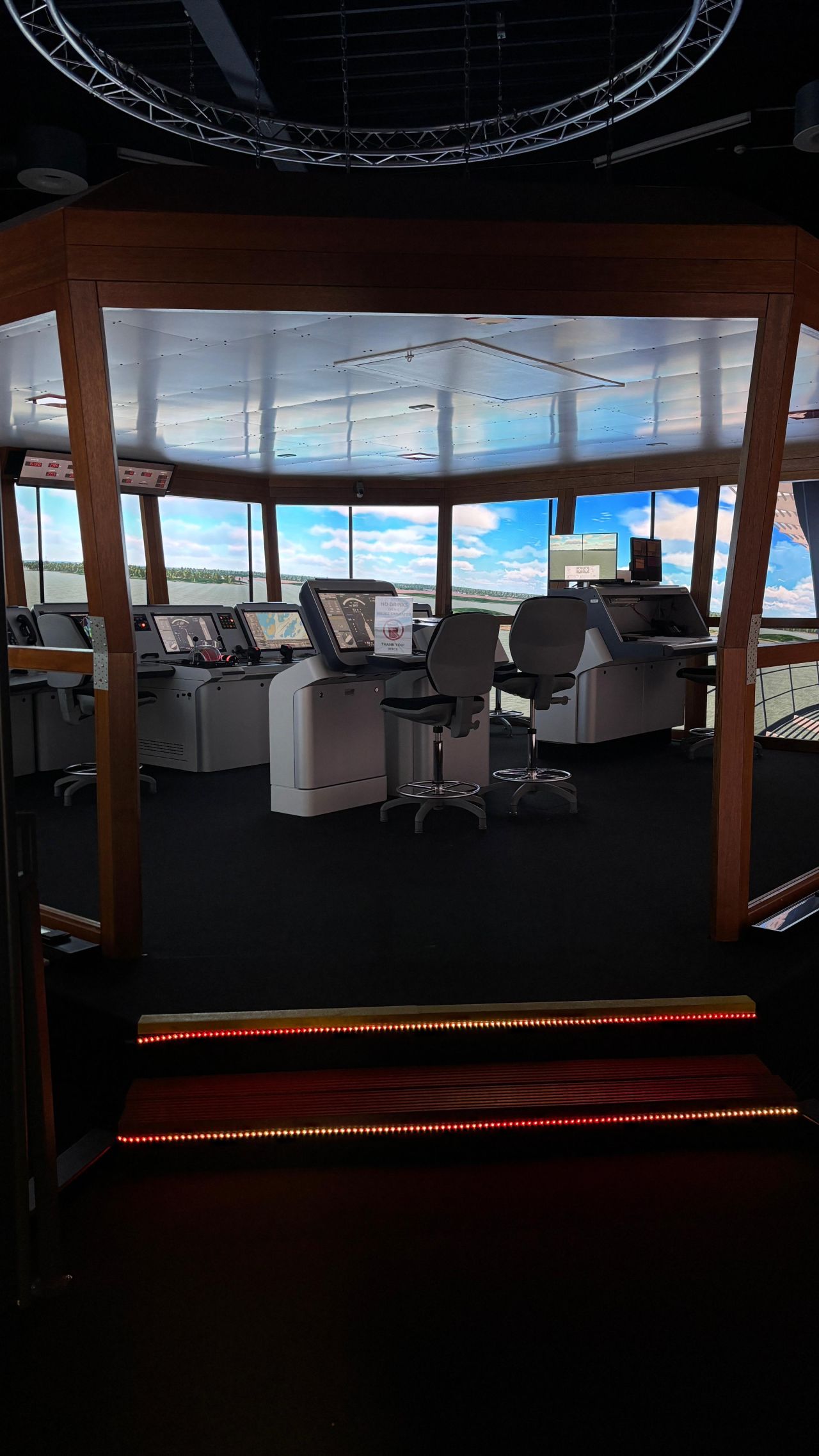 Die neue Displayinstallation ermöglicht eine nahezu vollständige 360-Grad-Visualisierung auf der Simulatorbrücke und verbessert damit die Realitätsnähe der Trainingsumgebung erheblich. Moderne Displaytechnologie spielt eine zentrale Rolle bei der Simulation komplexer Navigationssituationen, Hafenmanöver und maritimer Verkehrsszenarien.