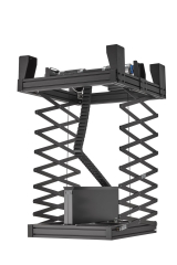 Ein eingebauter Sicherheitsmechanismus bietet maximalen Schutz, sollte es zu einem unwahrscheinlichen Versagen des Fahrmechanismus kommen. Die Bewegung des Befestigungsrahmens für den Projektor wird über zwei starke Stahlseile kontrolliert.