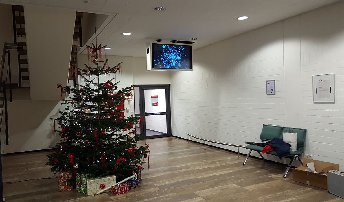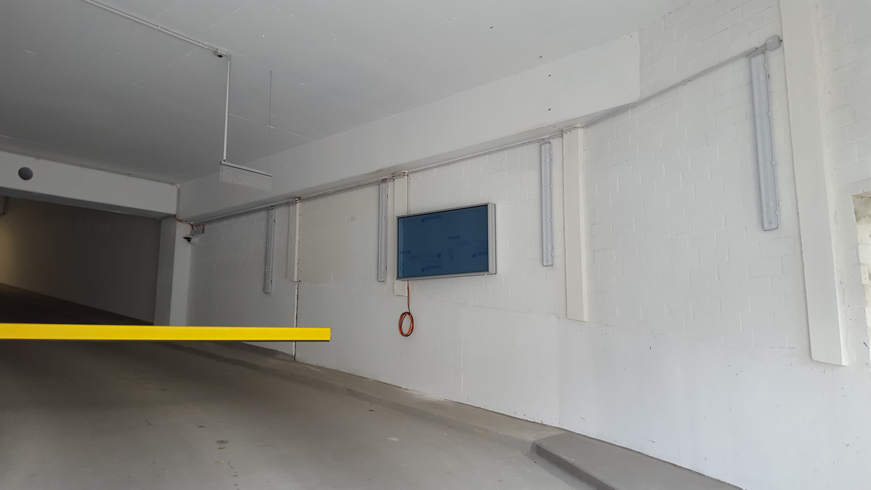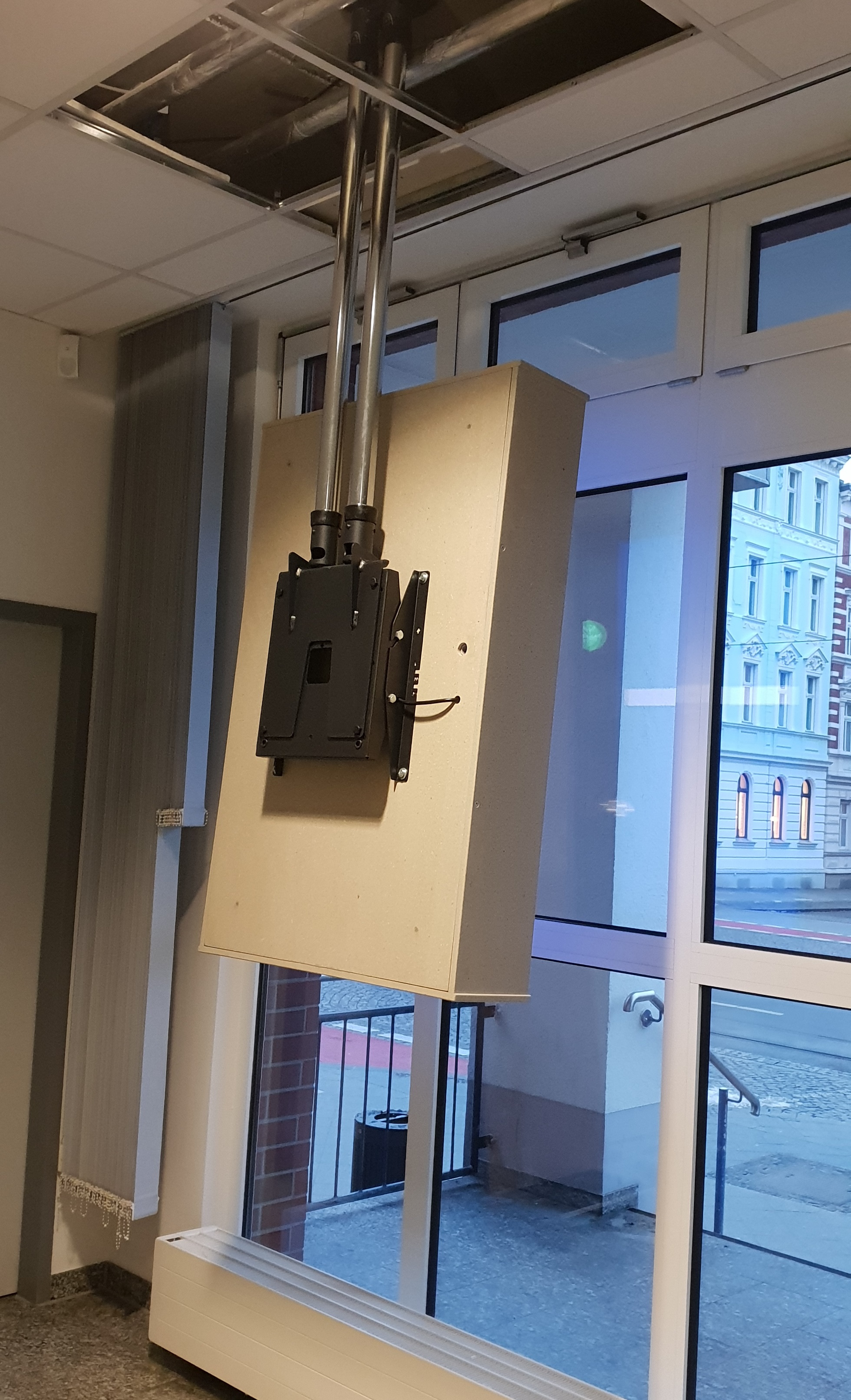 Brandschutzgehäuse mit 55 Zoll Fernseher in Wartebereich