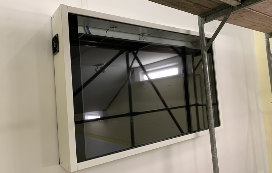 Schutzgehäuse für 55 Zoll Displays mit Brandschutz