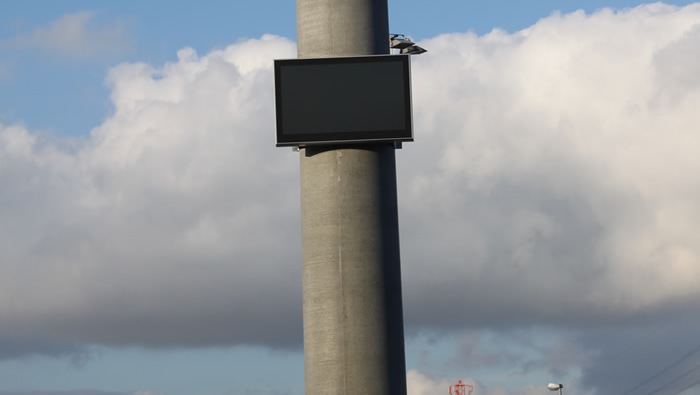 Montage eines 46 Zoll Outdoor Bildschirms an einem Mast